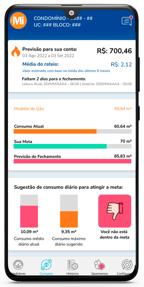 Com o app “MOBii Minha Conta”, cada morador tem acesso direto ao consumo de gás do seu apartamento. Por meio do app, é possível visualizar o histórico de consumo, ajustar metas e receber alertas em caso de suspeitas de vazamentos. Dessa forma, o morador tem maior autonomia e controle sobre seu uso de gás, promovendo uma gestão mais consciente e eficiente.